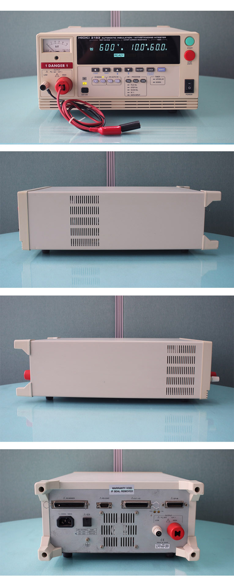 기능 : 50 스텝의 시험 설정을 32 파일까지 프로그램 가능 내압, 절연의 시험 내용을 각 10방법 메모리, hold, 버저