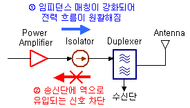 Isolator°¡ ÁÖ·Î »ç¿ëµÇ´Â ºÎÀ§´Â ¹Ù·Î ¼Û½ÅºÎÀÇ power amp µÞ´ÜÀÔ´Ï´Ù. ¼Û½ÅºÎÀ̱⠶§¹®¿¡ ½ÅÈ£¸¦ ¹ÛÀ¸·Î ³»º¸³»±â¸¸ ÇØ¾ßÁö, ¹Û¿¡¼ µé¾î¿Â ¿ÜºÎ½ÅÈ£°¡ power amp Ãâ·ÂÂÊÀ¸·Î ¿ªÀ¸·Î µé¾î°¡¼´Â ¾ÈµÇ´Â°Ô ´ç¿¬ÇϰÚÁö¿ä. ÀÌ·¸°Ô ¸¸¿¡Çϳª ¿ªÀ¸·Î ½ÅÈ£°¡ À¯ÀԵǴ °æ¿ì PA´Ü¿¡¼ ºÒÇÊ¿äÇÑ È¥º¯Á¶(intermodulation)À» ÀÏÀ¸ÄѼ ½Ã½ºÅÛ ¼±Çü¼ºÀ» ¶³¾î¶ß¸± ¼ö ÀÖ½À´Ï´Ù. ±×·¸°Ô µÇ¸é °á°úÀûÀ¸·Î Åë½Åº¯Á¶¼º´ÉÀÌ ¶³¾îÁ®¼ ¿¡·¯À²µµ ³ô¾ÆÁö±â ¶§¹®¿¡, ¿ªÀ¯ÀÔ ½ÅÈ£´Â ¾î¶»°Ôµç ¸·¾Æ¾ß ÁÁ½À´Ï´Ù.