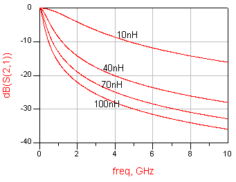 »ç½Ç Áö±Ý±îÁö À§¿¡ ¾ð±ÞÇÑ L°ú C¿¡ ´ëÇÑ ³»¿ëÀº ¸ðµÎ idealÇÑ °æ¿ì¿´½À´Ï´Ù. ½ÇÁ¦·Î inductor¿Í capacitor¸¦ »ç¿ëÇÒ ¶§ ²À ¾Ë¾ÆµÎ¾î¾ß ÇÒ °ÍÀÌ, ¹Ù·Î SRF(ÀÚ±â°øÁøÁ֯ļö)ÀÔ´Ï´Ù. ¾Æ·¡´Â ½ÇÁ¦ InductorÀÇ S21À» ³ªÅ¸³½ ±×¸²ÀÔ´Ï´Ù.