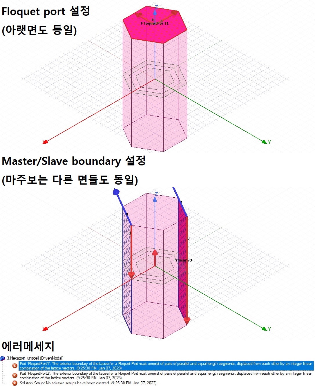 3. 그도 아니면 하나의 육각형 모양 유닛셀 안에서 floquet 포트를 정석적으로 설정하여 시뮬레이션을 돌리는 방법이 있을까요?