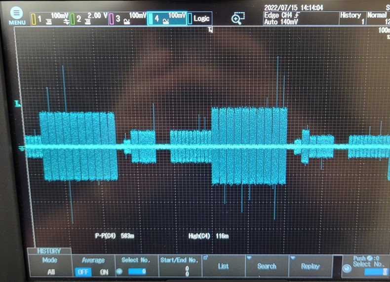 첨부 드린 사진은 SAW Sensor에서 reflected 되어 들어오는 파형입니다.