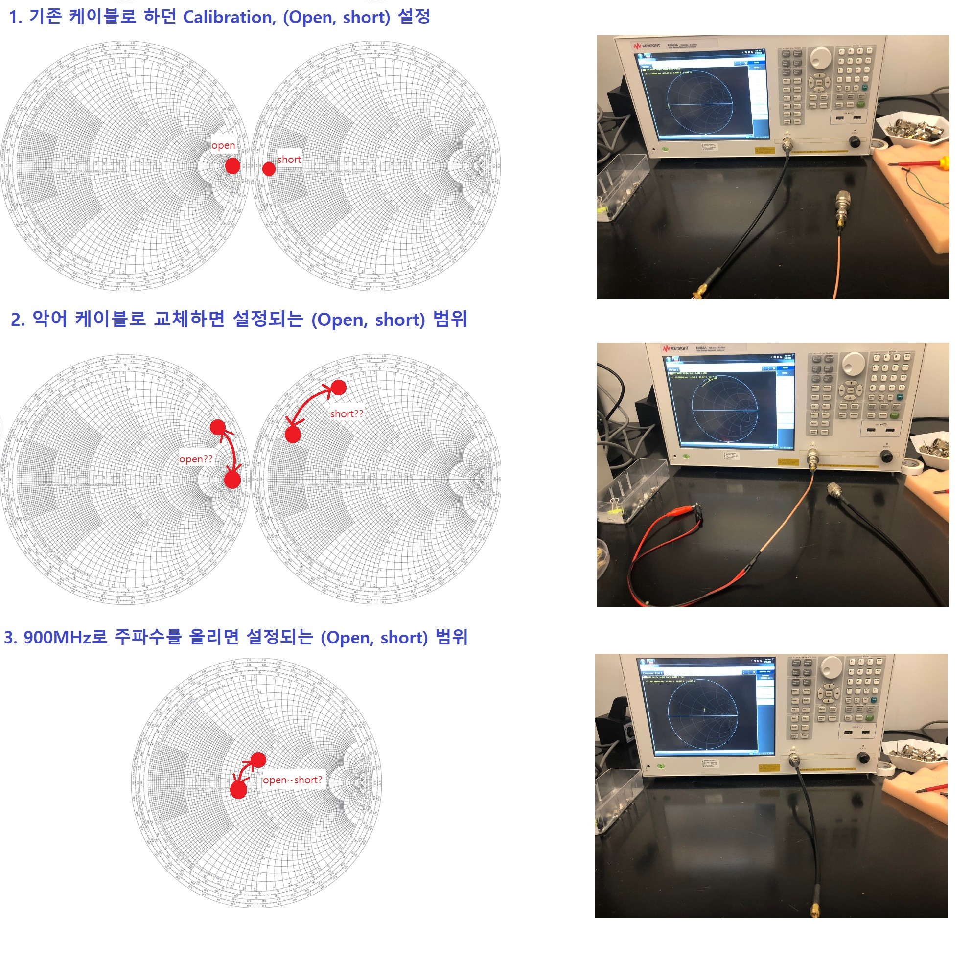 1. 이전에 쓰던 케이블로는 calibration에서 open 과 short가 다 올바른 포지션에 놓는게 가능했는데