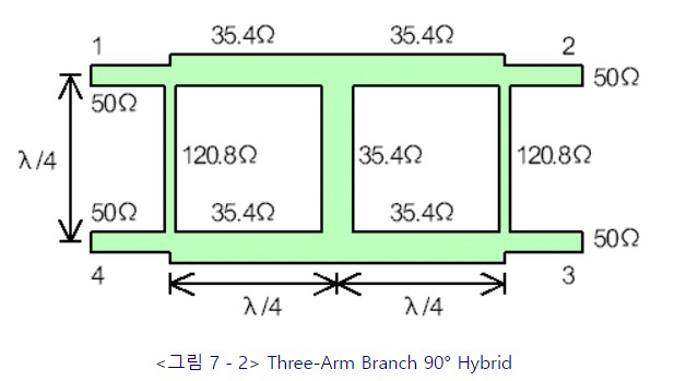 다음 그림과 같은 Three-Arm Branch coupler를 설계하였는데