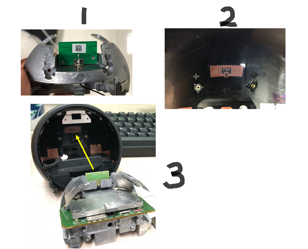위의 PCB 안테나가 이 FPCB 안테나를 마주보도록 향한 상태로 제품이 결합됩니다