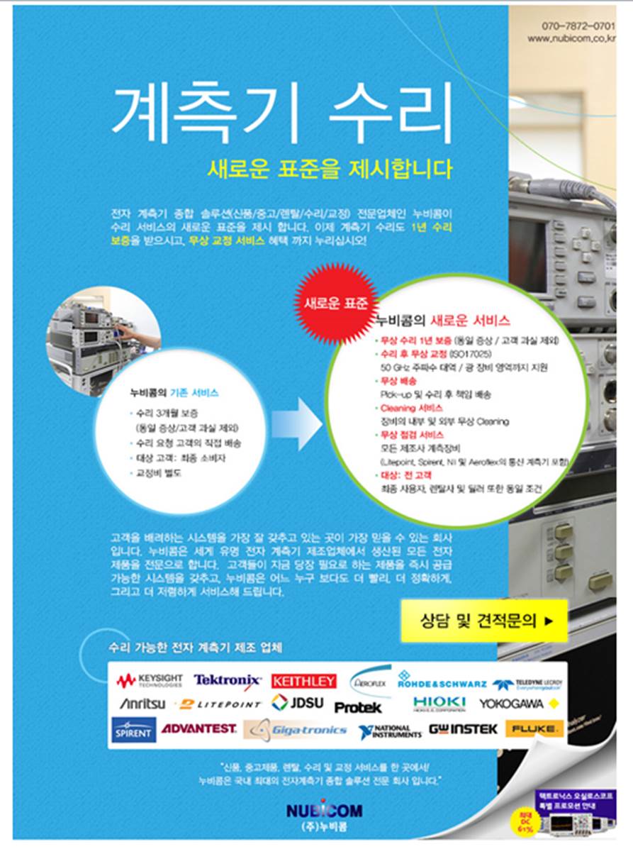 전자 계측기 종합 솔루션(신품/중고/렌탈/수리/교정) 전문업체인 누비콤이