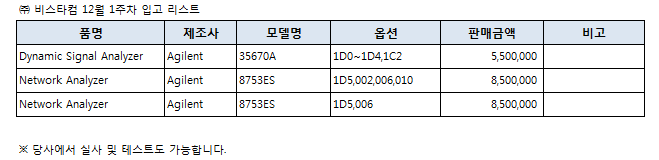 12월 1주차 입고 장비 리스트 올립니다.