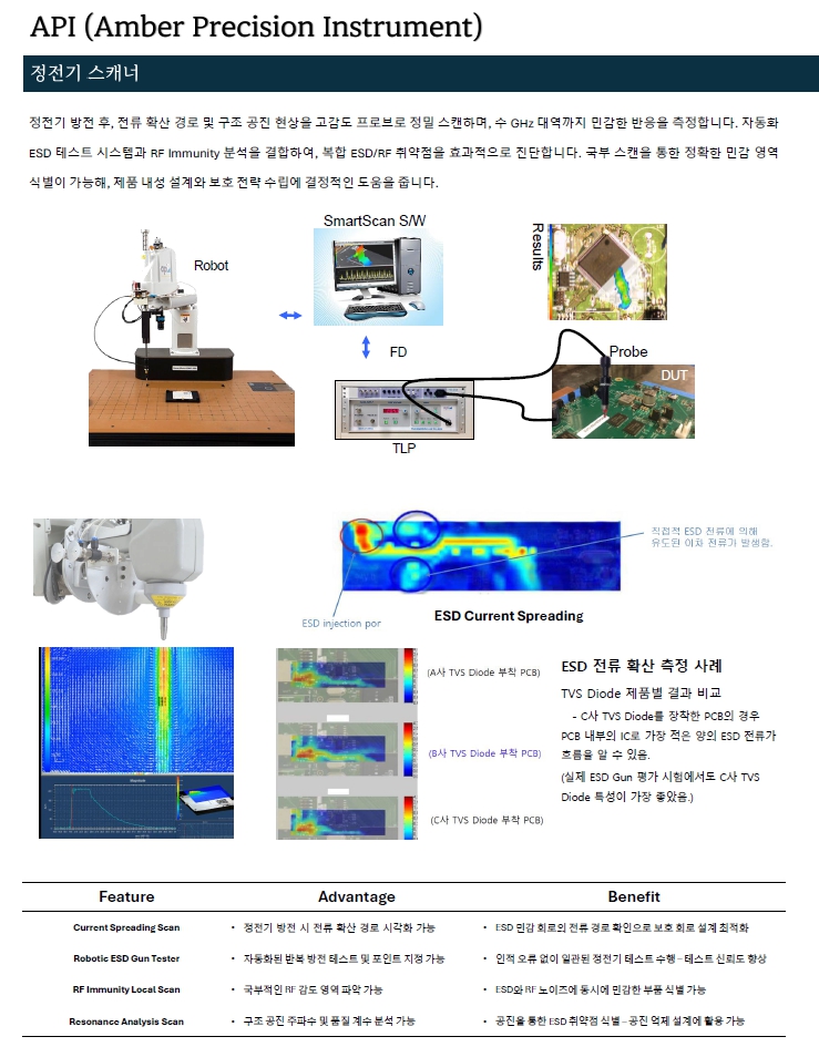 저희가 국내에 소개하고 있는 미국 Amber Precision Instruments (API)사의 고성능 EMI 스캐너 및 ESD 스캐너를 소개해드리겠습니다.