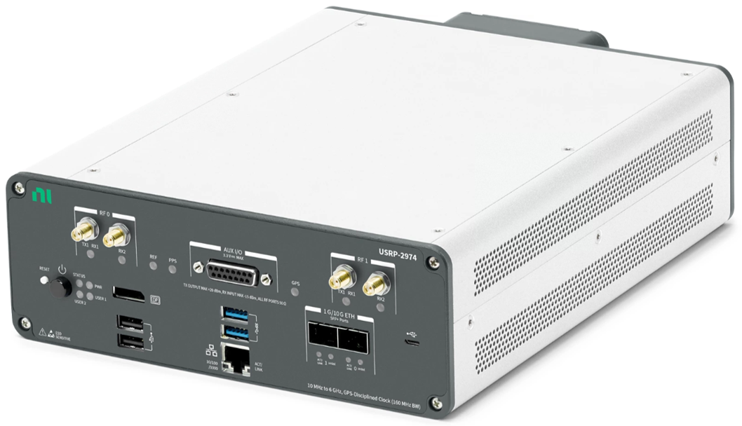 USRP-2974는 NI Linux Real-Time OS를 실행하는 온보드 Intel Core i7 프로세서를 갖춘 LabVIEW 재구성 가능한 I/O (RIO) 아키텍처를 기반으로합니다. USRP-2974는 USRP 소프트웨어 정의 라디오 독립 디바이스로, LabVIEW Communications System Design Suite를 사용하여 온보드 프로세서에 바로 접근하여 시간 결정성있는 처리가 가능합니다. USRP-2974에는 또한 GPS 기반 10 MHz 오븐 제어형 크리스탈 발진기 (OCXO: Oven-controlled crystal oscillator ) 참조 클럭이 탑재되어 있습니다. 독립형 LTE 또는 802.11 디바이스 에뮬레이션을 포함하여 매체 접근 제어 MAC (Medium Access Control), 알고리즘 개발, 다중 입력, 다중 출력 (MIMO), 이 기종 네트워크; LTE 중계, RF 압축 샘플링, 스펙트럼 감지, 인지 라디오, 빔 포밍, 방향 찾기와 같은 다양한 고급 연구 어플리케이션의 프로토타입을 만들 수 있습니다. Linux® 등록 상표는 전 세계에 Linux 상표권을 보유하고 있는 Linus Torvalds와 독점 라이센스 계약을 맺은 LMI의 2차 라이센스에 따라 사용됩니다.