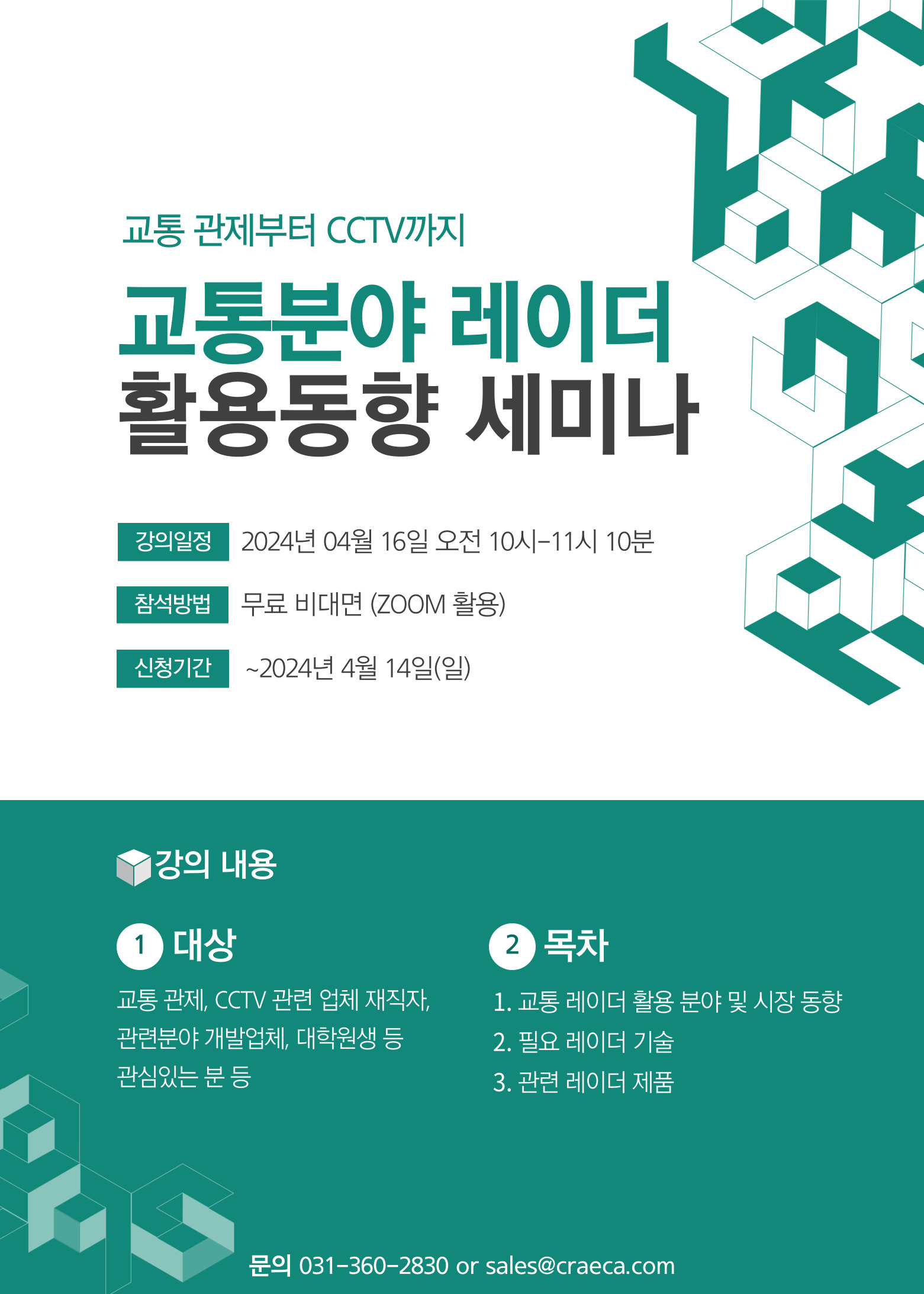 ㆍ대 상 : 교통관제, CCTV 관련 업체 재직자, 관련분야 개발업체, 대학원 생 등 관심있는 분 등