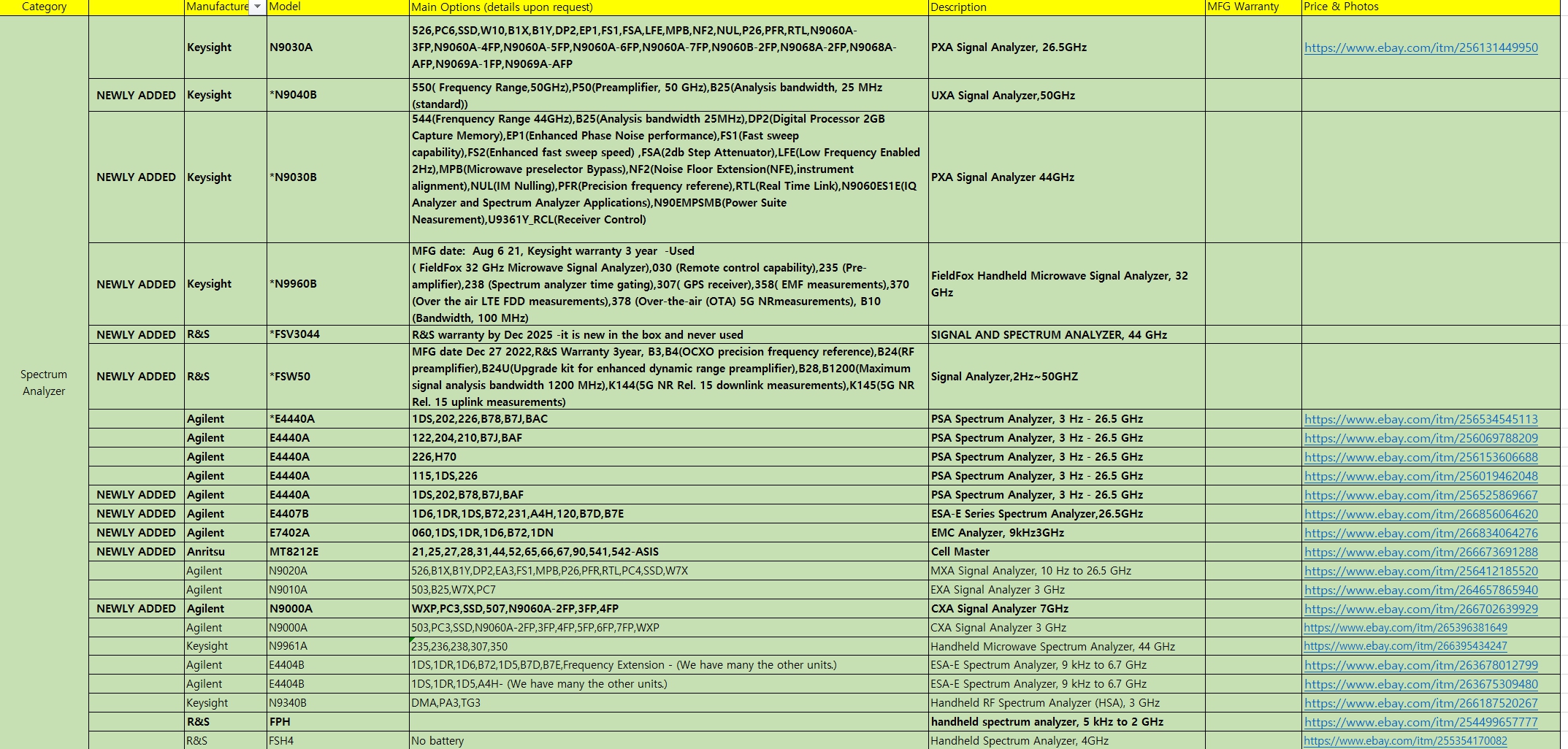 Agilent E4404B 1DS,1DR,1D5,A4H- (We have many the other units.)