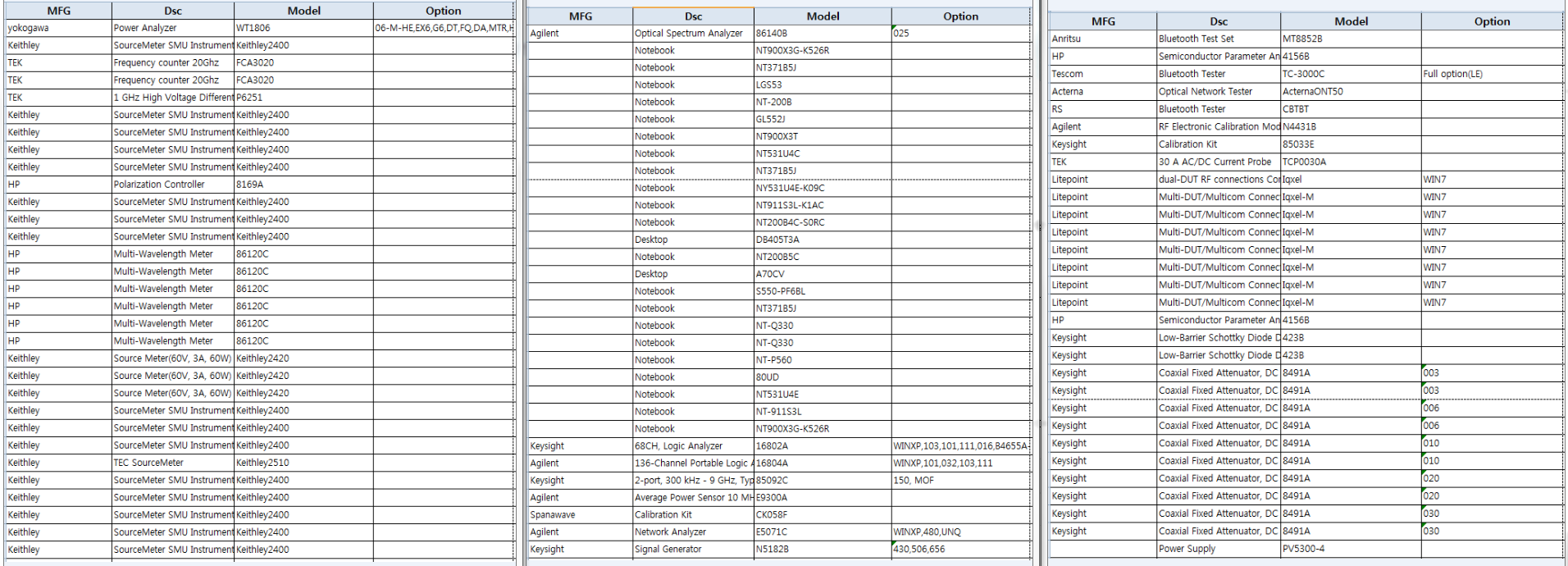 금주 입고된 판매 장비 리스트 올려드립니다.