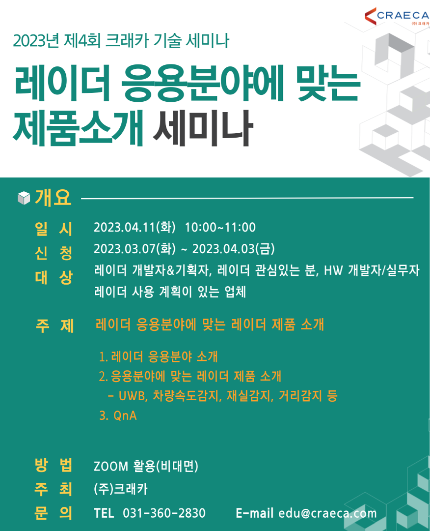 [세미나] 레이더 응용분야에 맞는 레이더 제품소개 (4/11(화))__무료 온라인