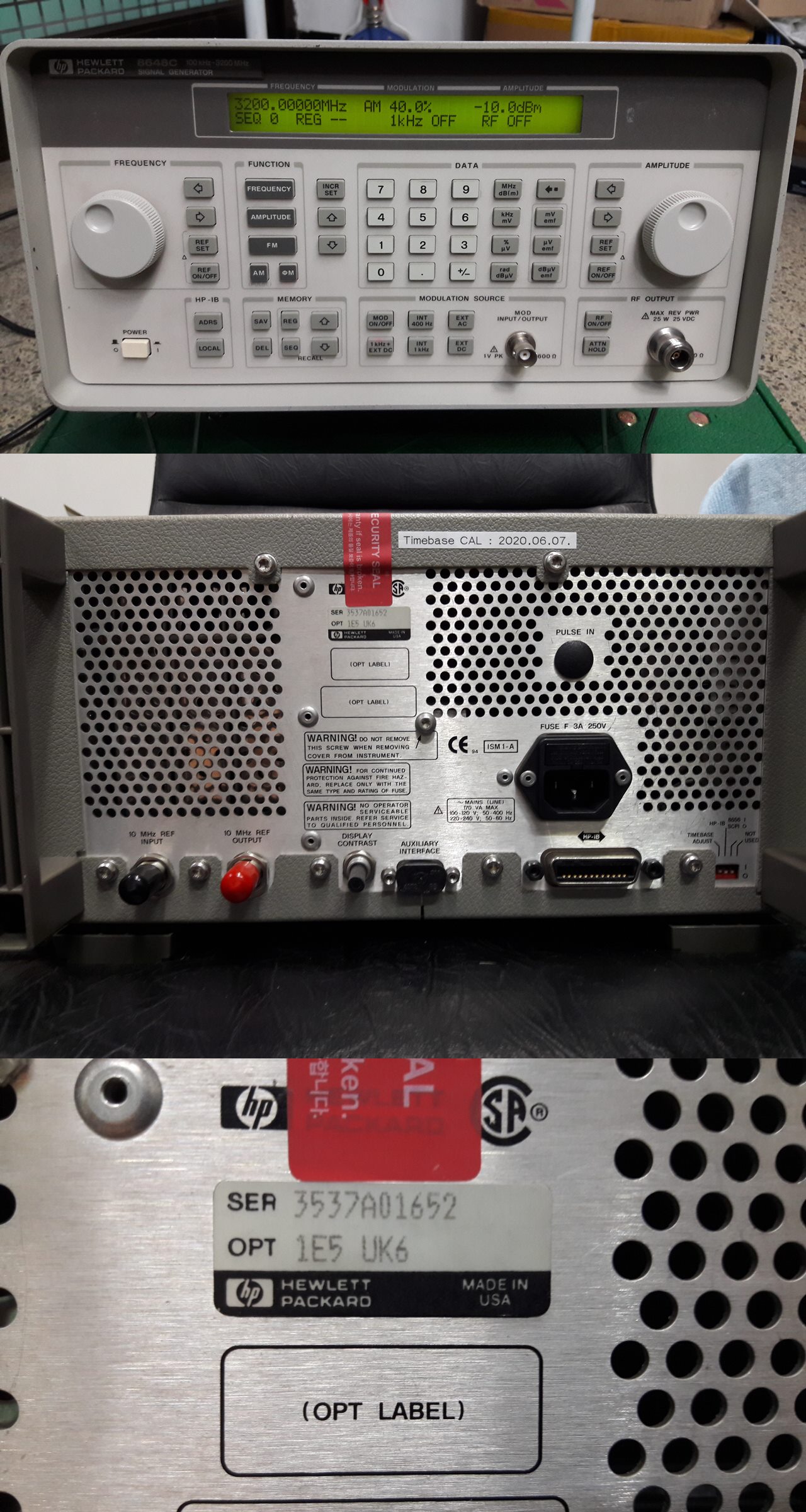 내부 깨끗이 청소되었고, Time Base는 루비듐오실레이터를 사용하여 금년 6월에 교정하였습니다.