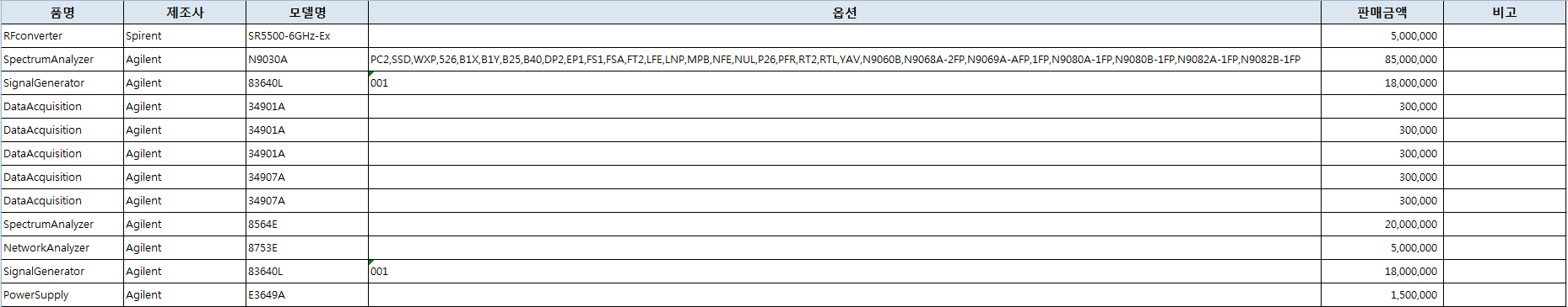 2월 3주차  입고 장비 리스트 올립니다.