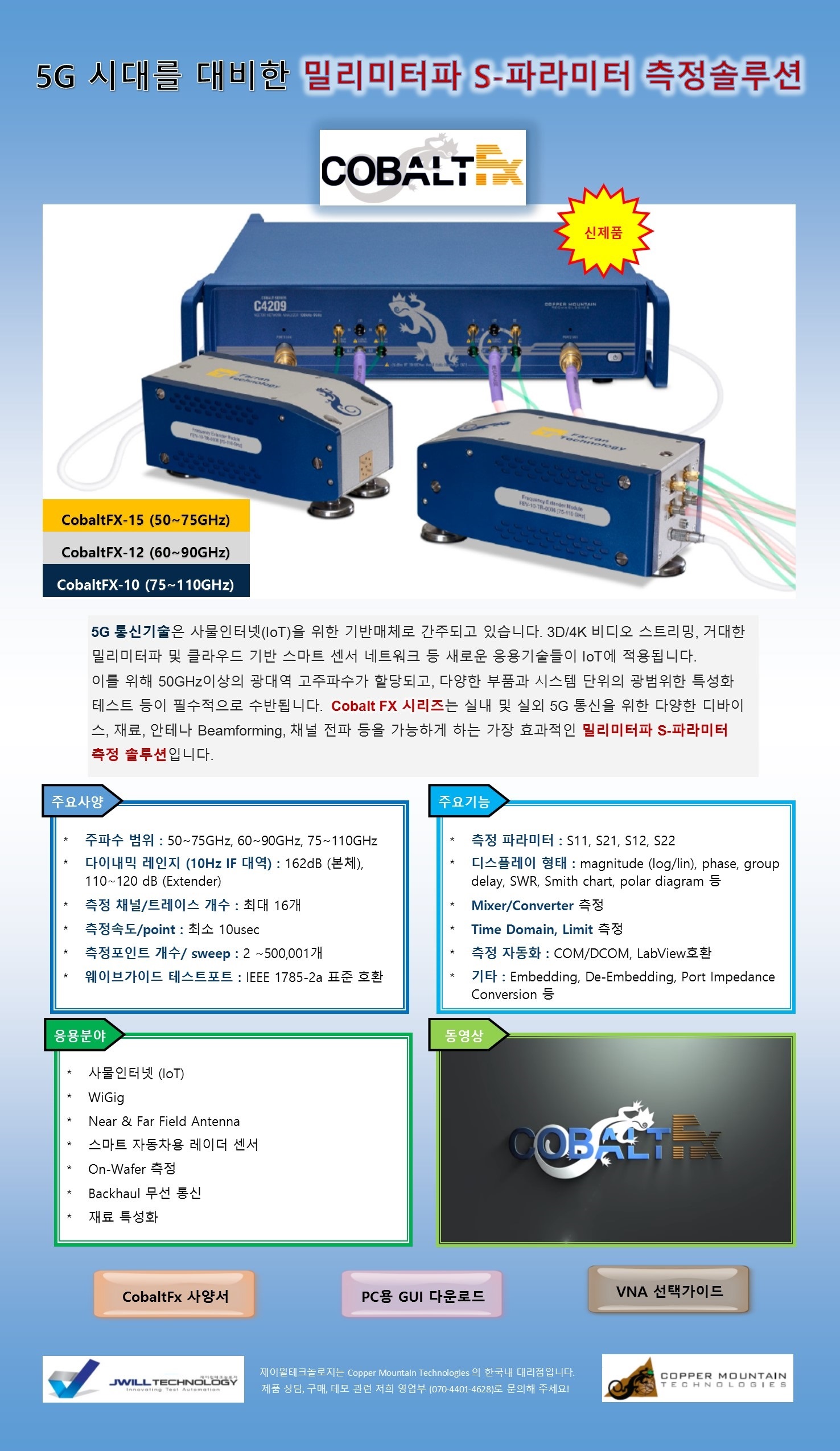 Copper Mountain Technologies사의 신제품 CobaltFX Series에 대해서 제품 정보, 기술상담, 시연, 구매에 대해서 관심있으신 분은 언제든지 문의해 주시기 바랍니다.