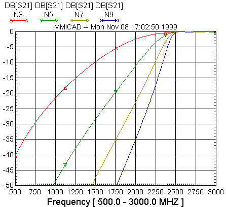 n=3,5,7,9 fc=2500MHz Zo=50ohm