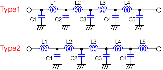 1. Input element number (n), cutoff frequency (fc), characteristic impedance (Zo), ripple, and click on [ Calculate ] button. 2. A calculation result is indicated. [ Note ]The number of element is only an odd number individual. (Even if an even number is inputted to n, 1 is added automatically, and changed into the odd number.) |